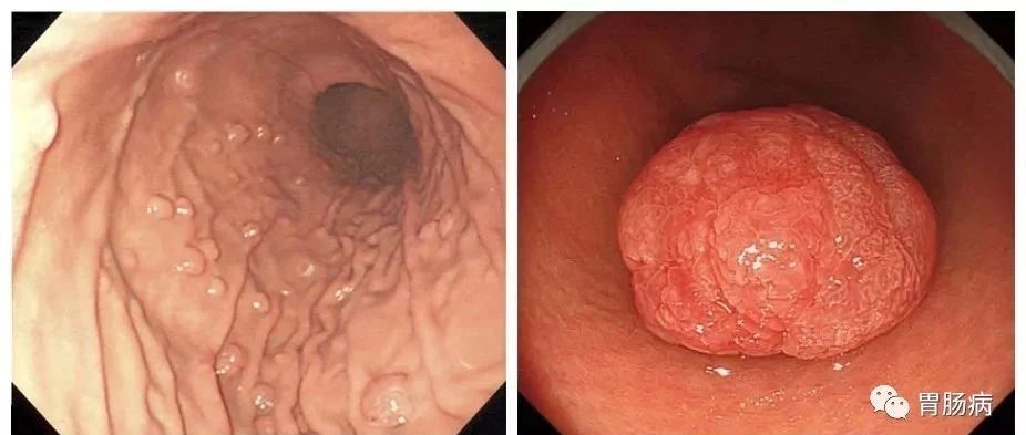 約占胃息肉的10%~25%,癌變率高,可達(dá)30%~58.3%,尤其瘤體較大(>2cm的廣基息肉)、絨毛狀腺瘤、伴異型增生者惡變率更高。